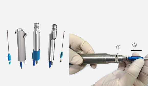 • 分體式手機(手柄和機頭可以分離,一個(gè)手柄可以連接不同尺寸的直彎機頭,完成低速手機(1400轉/分)